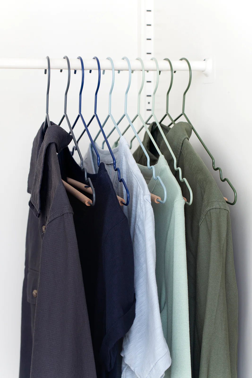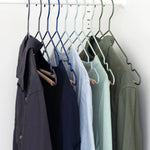 The Hangers come in packs of 10 and fit perfectly inside The Skinny and The Twinny. They come in all 12 colors, or you can pick a bundle in two fun color themes: Summer (Mustard, Berry, Blush, Lilac and Chalk) and Winter (Olive, Sage, Ocean, Navy and Slate).