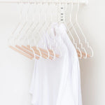 The Hangers come in packs of 10 and fit perfectly inside The Skinny and The Twinny. They come in all 12 colors, or you can pick a bundle in two fun color themes: Summer (Mustard, Berry, Blush, Lilac and Chalk) and Winter (Olive, Sage, Ocean, Navy and Slate).